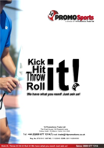 a division of 14 Promotions Trade Ltd & Equipment Kick it!, Throw it! Hit it! Roll it! We have what you need! Just ask us! Sales: 0800 677 1314