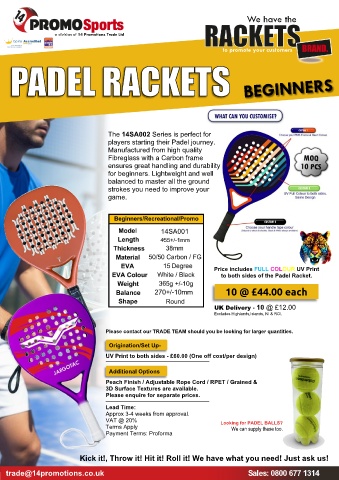 t trade@14promotions.co.uk Sales: 0800 677 1314