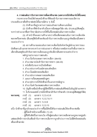 (4) สถานศึกษาขอผอนผันการตรวจเลือกไปยังจังหวัดภูมิลำเนาทหารของ นักศึกษาสามารถติดตอขอทราบรายละเอียดเพ่มเติม ไดท่กองพัฒนานักศึกษา
