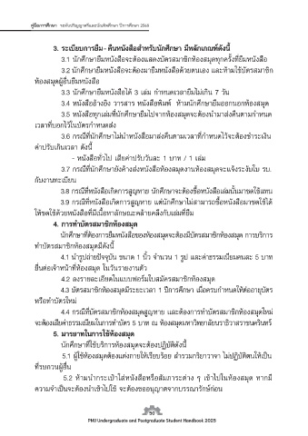 3.1 นักศึกษายืมหนังสือจะตองแสดงบัตรสมาชิกหองสมุดทุกครั้งที่ยืมหนังสือ หองสมุด