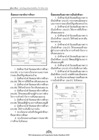 ขั้นตอนการลาพักการศึกษา ขั้นตอนขอคืนสภาพการเปนนักศึกษา ขั้นตอนขอรักษาสภาพการเปนนักศึกษา