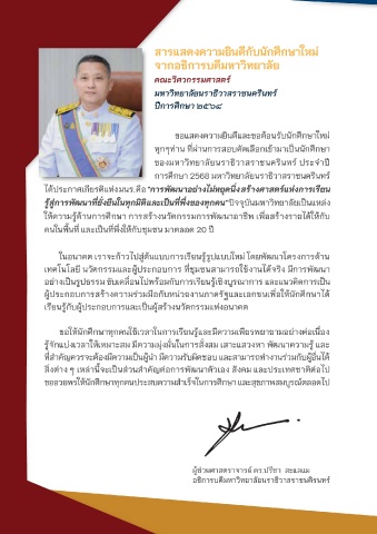 สารแสดงความยินดกบนกศกษาใหม่ สารแสดงความยินดกบนกศกษาใหม่