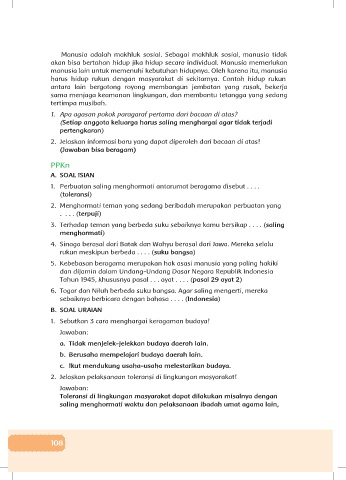 3. Terhadap teman yang berbeda suku sebaiknya kamu bersikap . . . . (saling