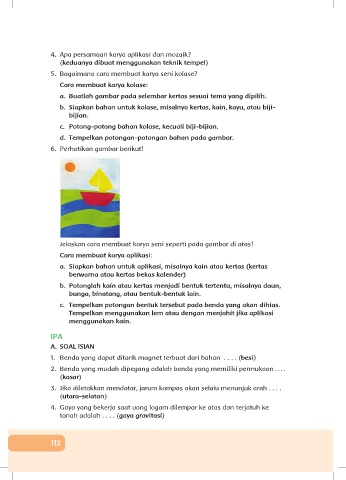 d. Tempelkan potongan-potongan bahan pada gambar.