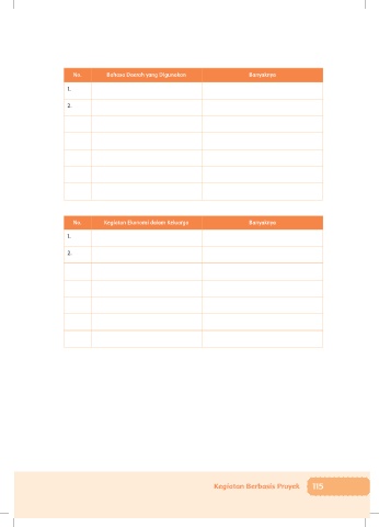No. Bahasa Daerah yang Digunakan Banyaknya 1. 2. No. Kegiatan Ekonomi dalam Keluarga Banyaknya 1. 2. Kegiatan Berbasis Proyek 115