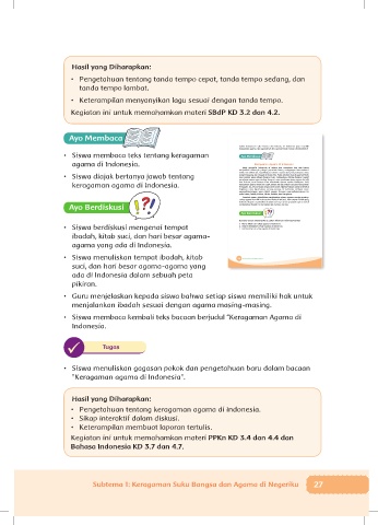 • Siswa membaca kembali teks bacaan berjudul “Keragaman Agama di