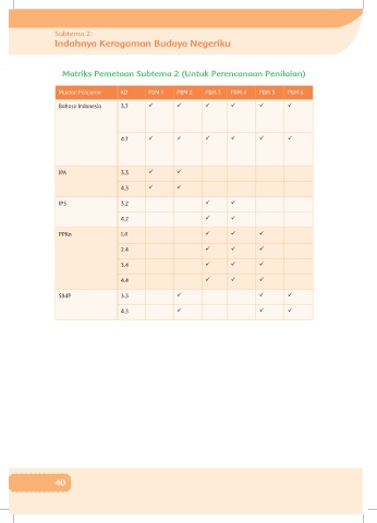 Matriks Pemetaan Subtema 2 (Untuk Perencanaan Penilaian)
