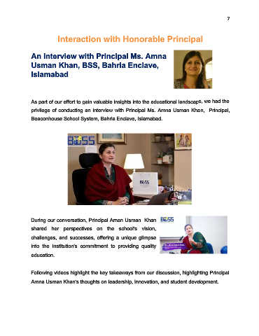 privilege of conducting an interview with Principal Ms. Amna Usman Khan, Principal,