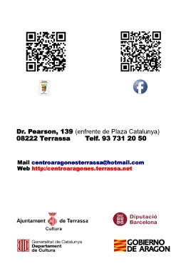 Dr. Pearson, 139 (enfrente de Plaza Catalunya) 08222 Terrassa Telf. 93 731 20 50 Mail centroaragonesterrassa@hotmail.com Web http:/centroaragones.terrassa.net