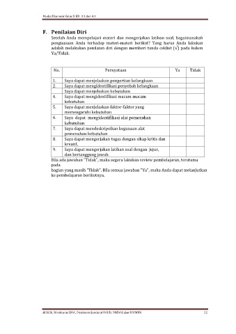 Bila ada jawaban "Tidak", maka segera lakukan review pembelajaran, terutama