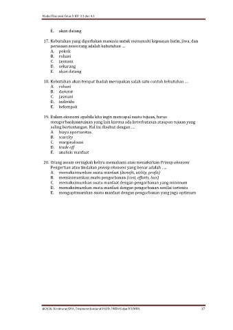 19. Dalam ekonomi apabila kita ingin mencapai suatu tujuan, harus