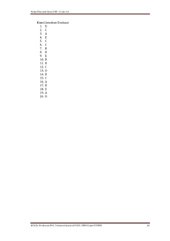 Modul Ekonomi Kelas X KD 3.1 dan 4.1 Kunci Jawaban Evaluasi 1. D 2. C 3. A 4. E 5. C 6. C 7. B 8. B 9. E 10. B 11. B 12. C 13. D 14. B 15. C 16. A 17. B 18. E 19. A 20. D @2020, Direktorat SMA, Direktorat Jenderal PAUD, DIKDAS dan DIKMEN 38