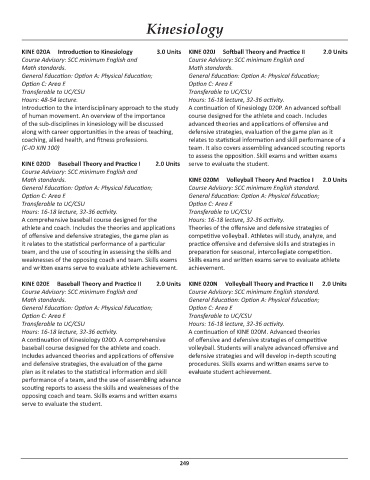 KINE 020A Introduction to Kinesiology 3.0 Units KINE 020J Softball Theory and Practice II 2.0 Units