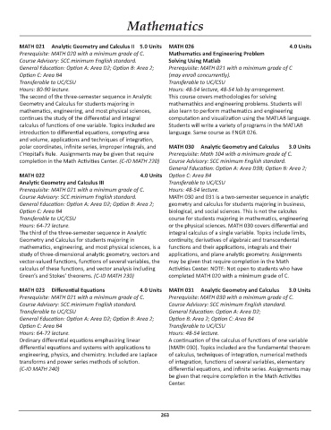 MATH 021 Analytic Geometry and Calculus II 5.0 Units MATH 026 4.0 Units