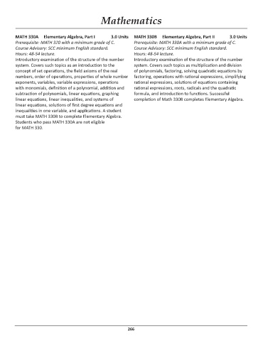 MATH 330A Elementary Algebra, Part I 3.0 Units MATH 330B Elementary Algebra, Part II 3.0 Units
