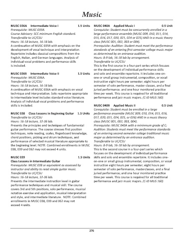 MUSC 036A Intermediate Voice I 1.5 Units MUSC 040A Applied Music I 0.5 Unit