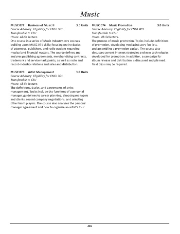 MUSC 072 Business of Music II 3.0 Units MUSC 074 Music Promotion 3.0 Units