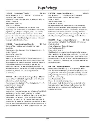 PSYC 012 Psychology of Gender 3.0 Units PSYC 034 Human Sexual Behavior 3.0 Units