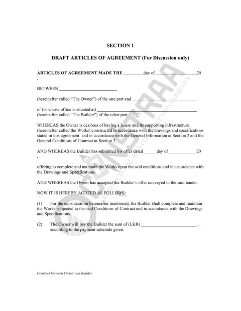 DRAFT ARTICLES OF AGREEMENT (For Discussion only)