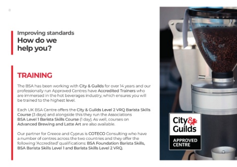following ‘Accredited’ qualifications: BSA Foundation Barista Skills, of products and service in the out-of-home hot