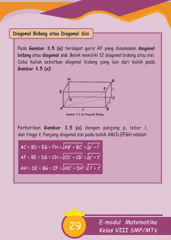 bidang atau diagonal sisi. Balok memiliki 12 diagonal bidang atau sisi.