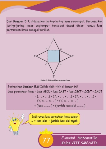 Dari Gambar 5.7, didapatkan jaring-jaring limas segiempat. Berdasarkan