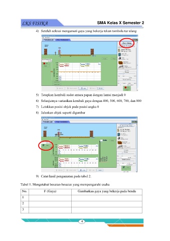 4) Setelah selesai mengamati gaya yang bekerja tekan tombola tur ulang