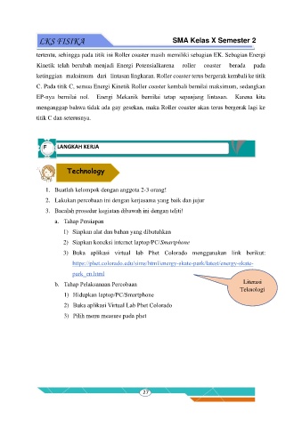 tertentu, sehingga pada titik ini Roller coaster masih memiliki sebagian EK. Sebagian Energi