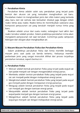 Elektronik Lembar Kerja Peserta Didik SMP/MTS Kelas VIII - Perubahan Fisika dan Perubahan Kimia