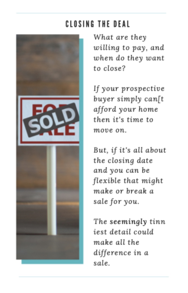 But, if it's all about the closing date and you can be flexible that might make or break a sale for you.