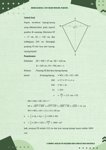 Jadi, panjang YZ adalah 113 cm dan luas layang-layang bapak adalah 1800