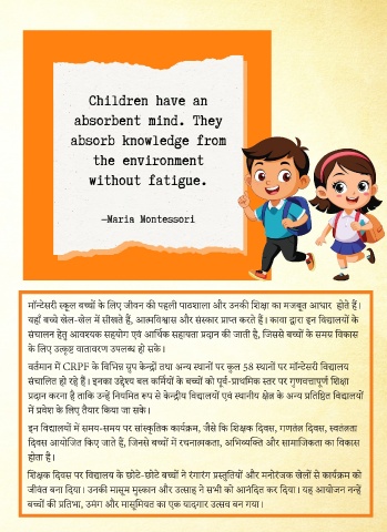 वातभमैा� मैं CRPF क निवाशिर्भन्न ग्रपी कन्द्ों त�ा अन्य स्थाा�ों पीर कल 58 स्थाा�ों पीर मैॉन्टेसीरी निवाद्याालय