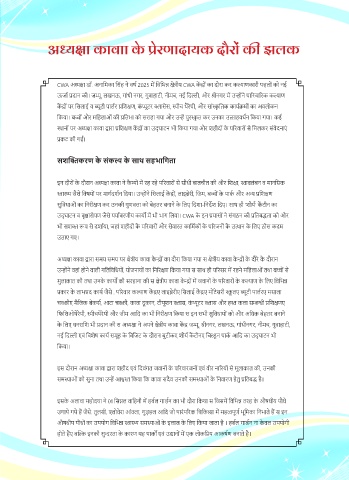 CWA अध्यक्षा ड्ॉ. अनोंाकिमेंका किसींह नोंे वाषि 2025 मेंं किवाकिभान्न क्षत्राीया CWA कद्रीों का दौरा कर कल्यााणकारी पीहलाों को नोंई