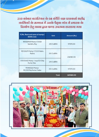 े 210 काोबोंरंा बोंटाालि�य� का 04 काीर्षित चाक्र प्राप्तकाताष शहींीदा े ै े ृ काार्षिमाकां का सम्माा� मां उं�का पुतका गॉवा मां स्माारंका का े नि�मााषणा हींतु काावाा द्वाारंा फण्ड उंपु�ब्� कारंवााया गया े