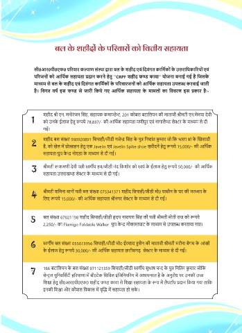 माध्येम सी बल क शहीीदों एवं दिदोंवंगत कादिमकंं क पीरिरवंारज�ंं कं आदिथक सीहीायता उपीलब्ध करवंाई जाती