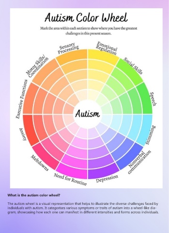The autism wheel is a visual representation that helps to illustrate the diverse challenges faced by