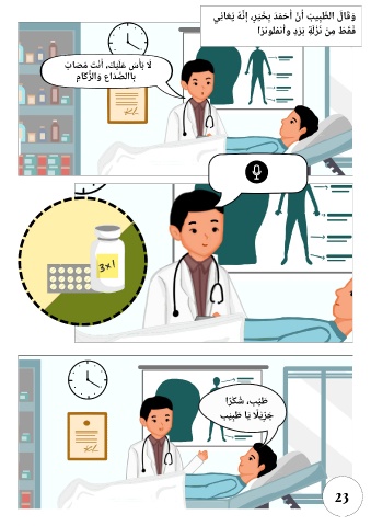 َ َ َ ﻲِﻧﺎَﻌُﻳ ُ ﻪﻧ ا ،ﺮ ْ ﻴﺨﺑ َﺪَﻤ ْ ﺣا نا ُ ﺐﻴﺒ ﻄﻟا لﺎﻗ َ و ِ ِ ٍ َ َ َ ْ َ اﺰﻧﻮﻠﻔﻧأو ٍ دْﺮَﺑ ِ ﺔﻟﺰﻧ ْ ﻦ ِ ﻣ ْ ﻂﻘﻓ َ ْ ُ بﺎ َ ﺼ ُ ﻣ َ ﺖﻧا ، َ ﻚ ْ ﻴﻠَﻋ َ سﺎَﺑ ﻻ َ َ ِ مﺎﻛﺰﻟا َ و عاَﺪ ﺼﻟاﺎﺑ ِ ْ ُ اًﺮﻜﺷ ،ﺐ ﻴ َ ﻃ ً ﺐ ْ ﻴﺒ َ ﻃ ﺎَﻳ ﻼْﻳﺰ َ ﺟ ِ ِ 23