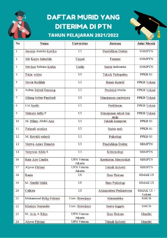 DAFTAR MURID YANG DITERIMA DI PTN TAHUN PELAJARAN 2021/2022