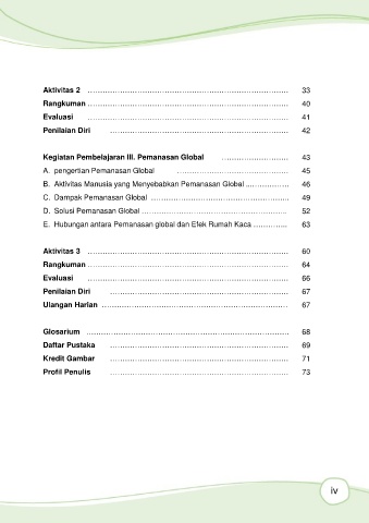 Kegiatan Pembelajaran III. Pemanasan Global ……………………… 43