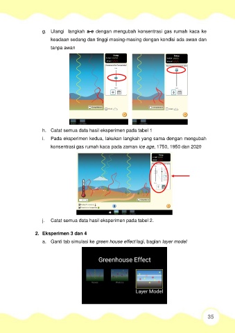 g. Ulangi langkah a-e dengan mengubah konsentrasi gas rumah kaca ke