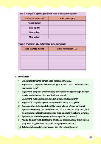 Tabel 3. Pengaruh lapisan gas rumah kaca terhadap suhu global