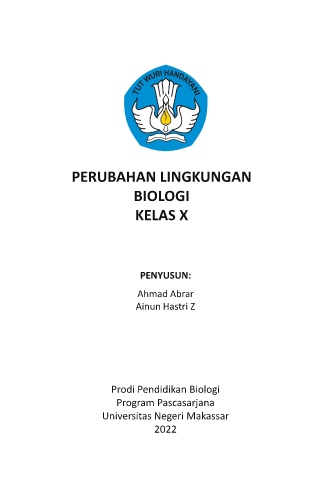 PERUBAHAN LINGKUNGAN BIOLOGI KELAS X PENYUSUN: Ahmad Abrar Ainun Hastri Z Prodi Pendidikan Biologi Program Pascasarjana Universitas Negeri Makassar 2022