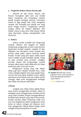 Contoh dari penerapan langkah reduce adalah kegiatan reduce, yaitu membawa