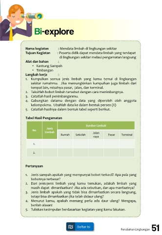 sekitar rumahmu. Jika memungkinkan kumpulkan juga limbah dari