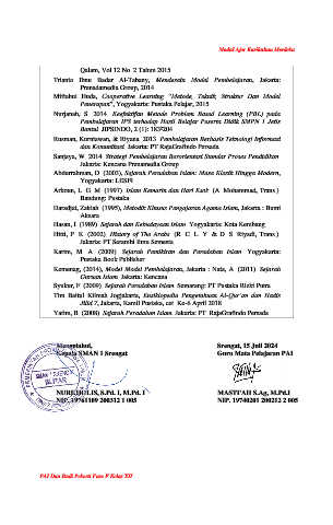 Kemenag, (2014), Model Model Pembelajaran, Jakarta : Nata, A. (2011). Sejarah