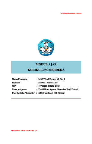 PAI Dan Budi Pekerti Fase F Kelas XII