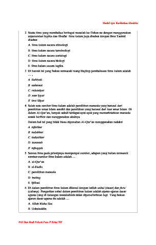 3. Di bawah ini yang bukan termasuk ruang lingkup pembahasan ilmu kalam adalah