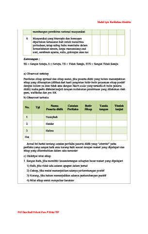 Penilaian sikap spritual dan sikap sosial, jika peserta didik yang belum menunjukkan