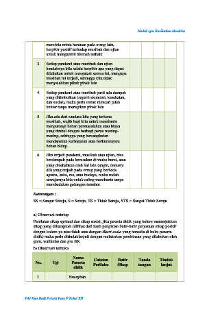 Penilaian sikap spritual dan sikap sosial, jika peserta didik yang belum menunjukkan