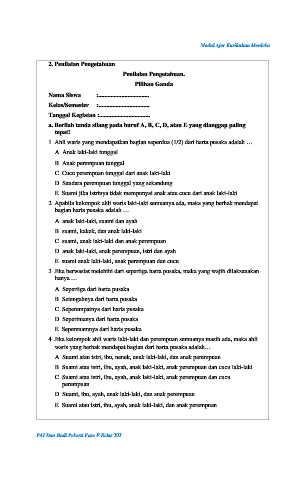 1. Ahli waris yang mendapatkan bagian seperdua (1/2) dari harta pusaka adalah …